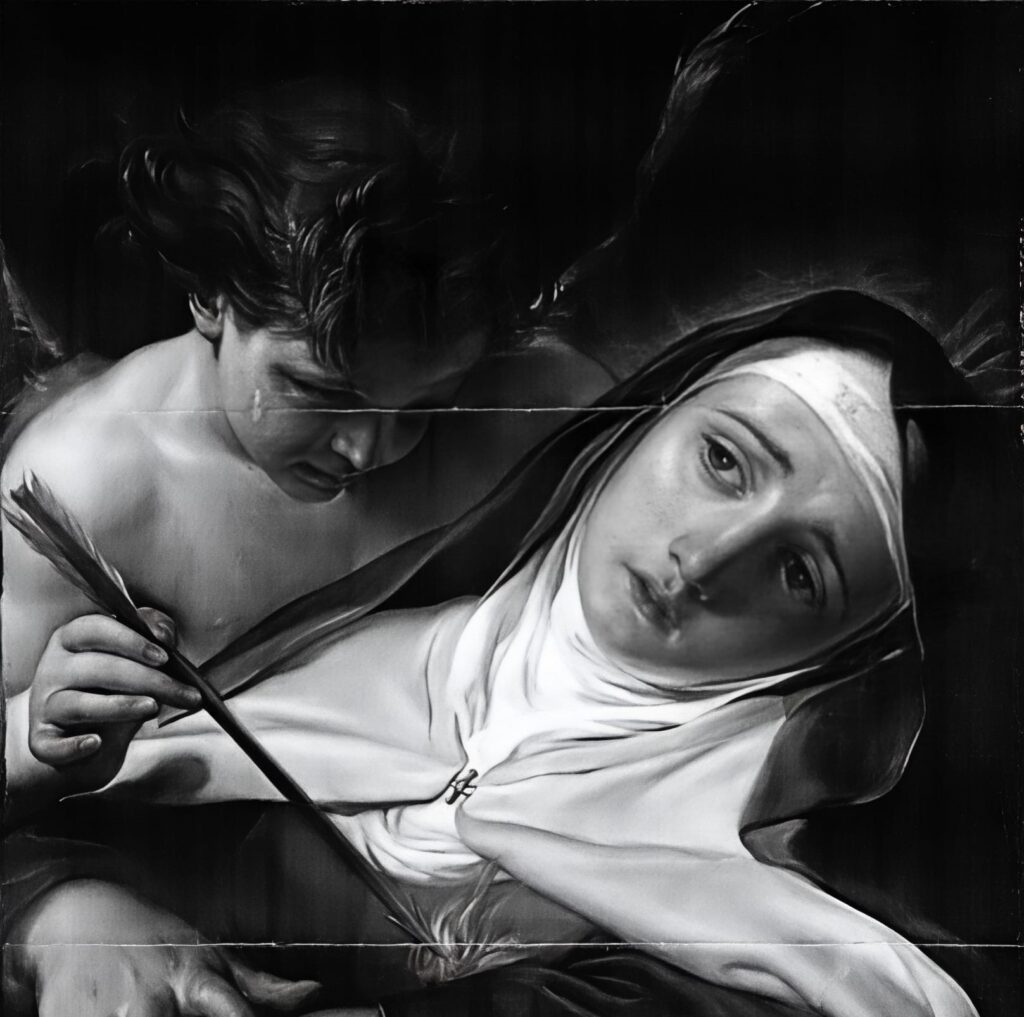 Teresa d’Avila, trafitta e trasfigurata, diventa così immagine viva dell’anima che, arresa all’Amore, non muore nel dolore, ma rinasce nella fiamma della divina tenerezza.